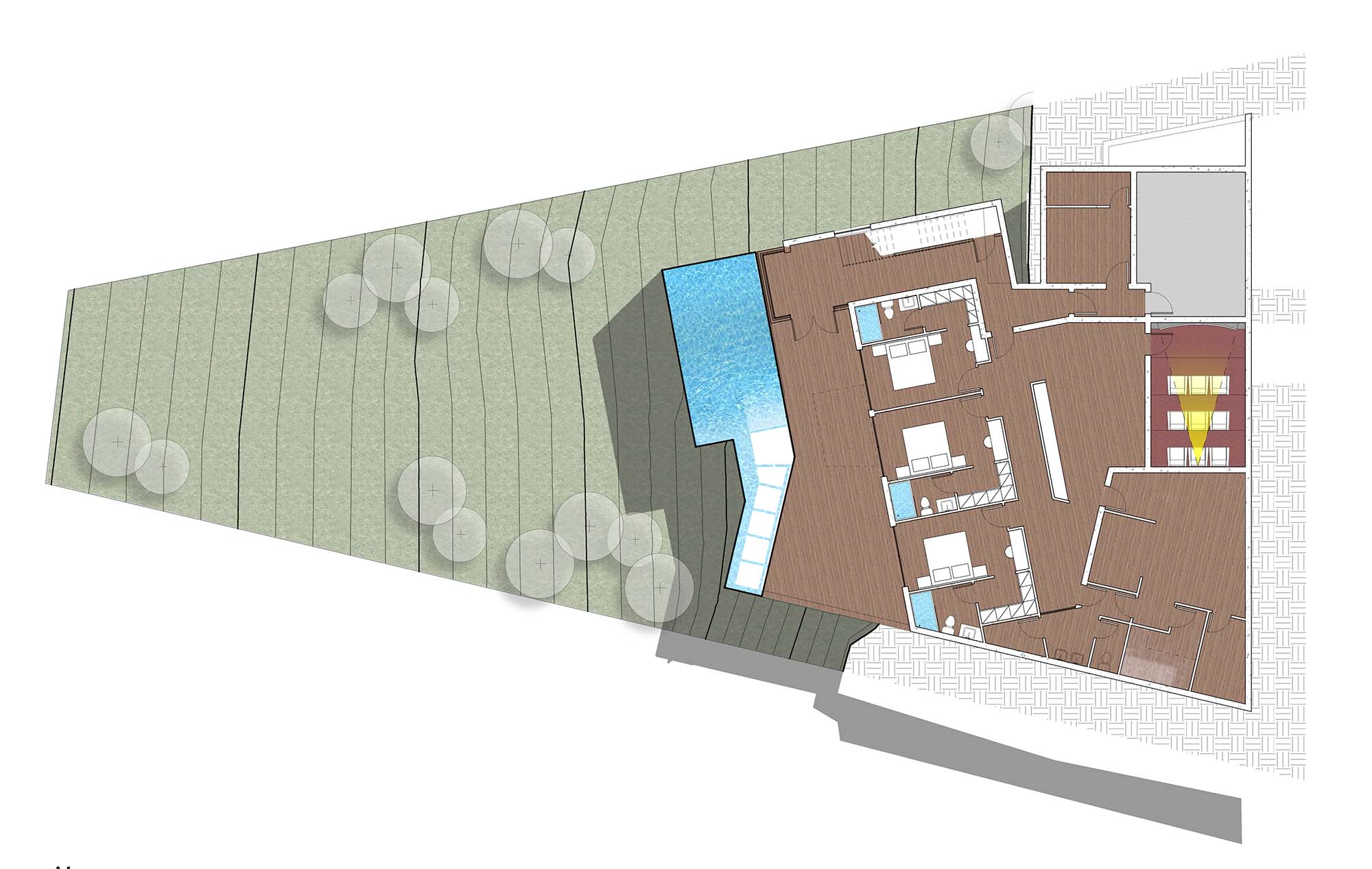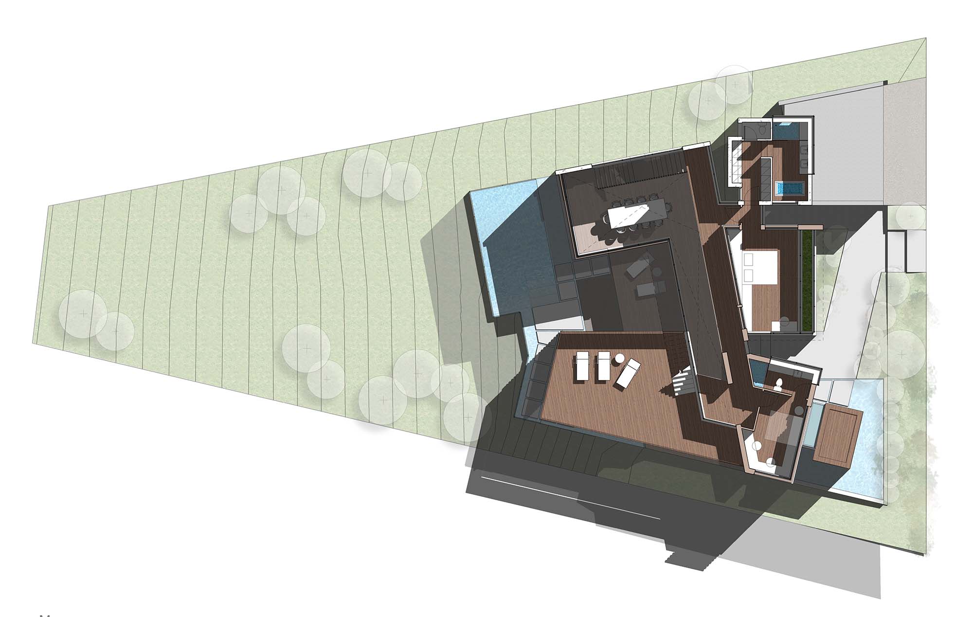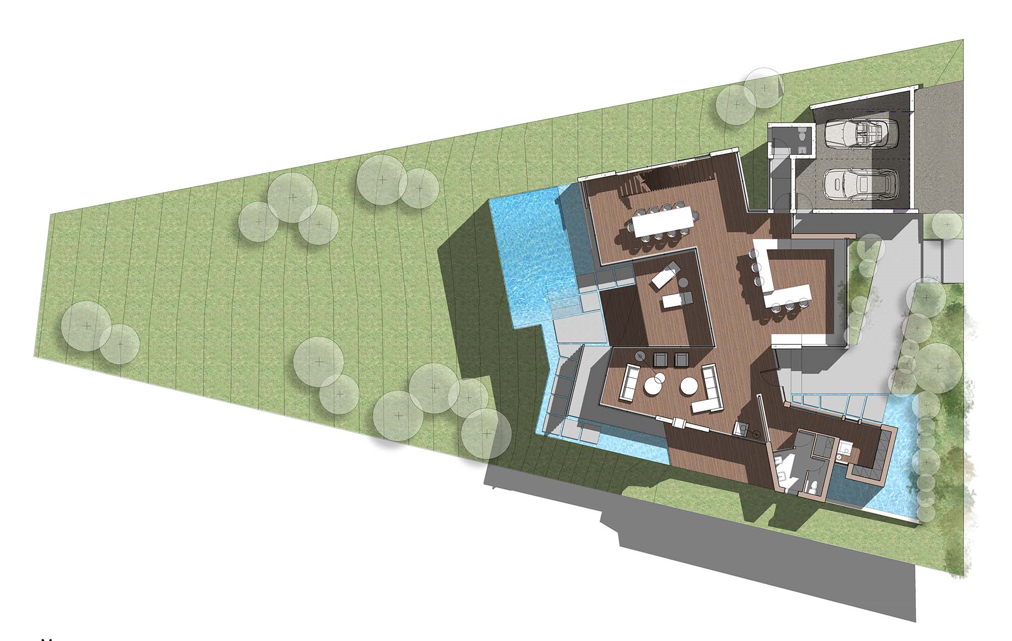 6,000 sqft 3-story house (including basement) and infinity pool on main/streel level with 2-car parking garage. We plan to put 2 bedrooms/2 bath (1 master suite and 1 guest bed/office) on upper level and 3 bedrooms/ 3 bath on lower level (basement), main/street level for entertaining/kitchen, powder room, open decks on all floors